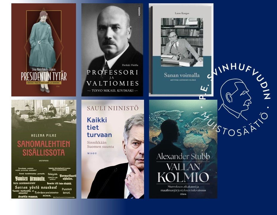 P.E. Svinhufvudin muistosäätiön hallitus on nimennyt ehdokkaat tämän vuoden kirjapalkintonsa saajiksi. Ehdolla on kuusi teosta: Heikki Halilan ”Professori ja valtiomies” (Warelia), Alexander Stubbin ”Vallan kolmio” (Otava), Liisa-Maria Hakala-Zilliacuksen ”Presidentin tytär (Siltala), Helena Pilken ”Sanomalehtien sisällissota” (Vastapaino), Lasse Kankaan ”Sanan voimalla” (Verbatum) ja Sauli Niinistön ”Kaikki tiet turvaan” (WSOY).